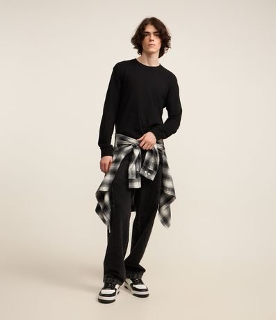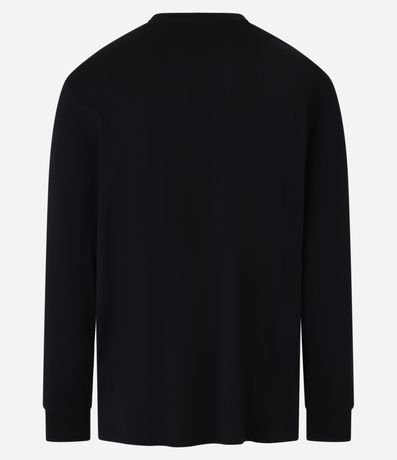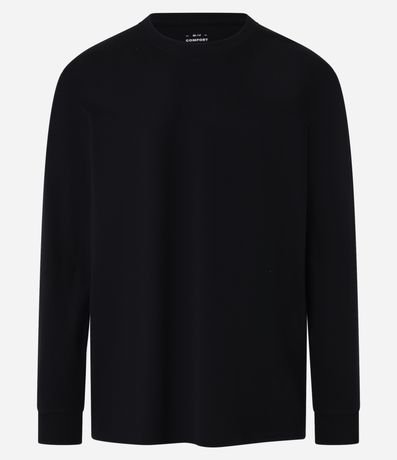 Ref: Camiseta masculina confeccionada em algodão mais sustentável, gola redonda, mangas longas ajustadas. No modelo comfort peça com detalhe de etiqueta na barra.