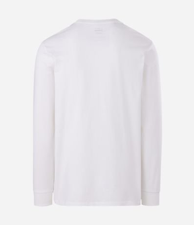 Ref: Camiseta masculina confeccionada em algodão mais sustentável, gola redonda, mangas longas ajustadas. No modelo comfort peça com detalhe de etiqueta na barra.