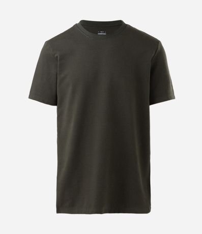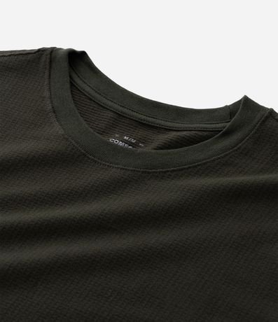 Camiseta masculina comfort confeccionada em algodão certificado bci e boas práticas ambientais. Modelo casual com com textura, gola redonda e manga curta.