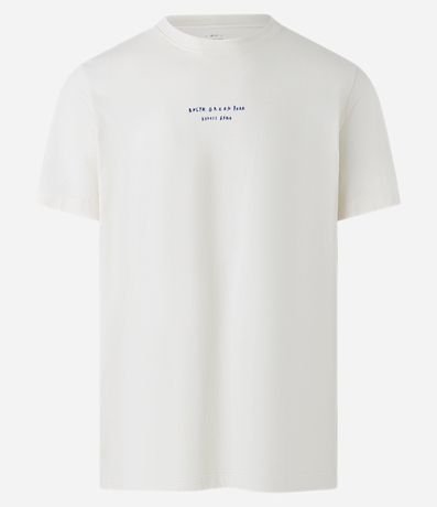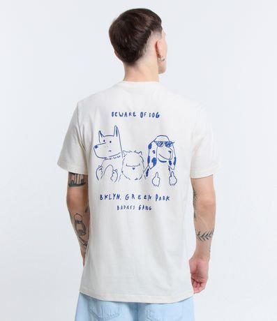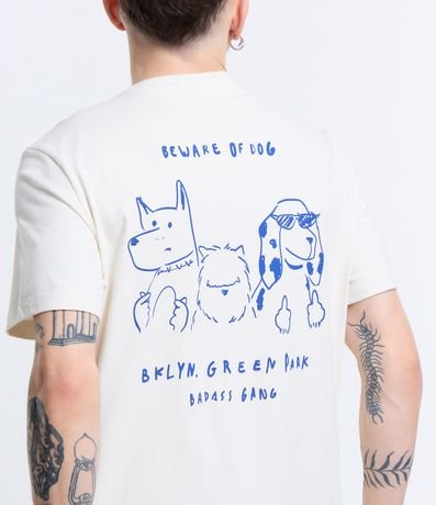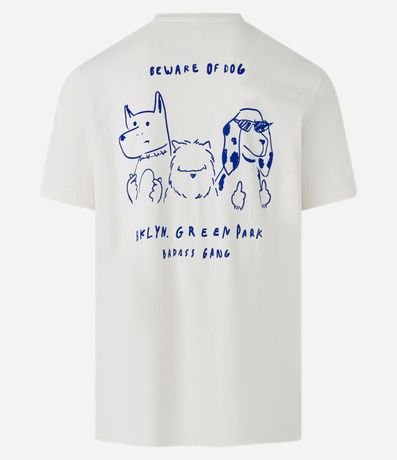Ref: Camiseta comfort, manga curta, em algodão mais sustentável e estampa em lettering no peito e dogs nas costas.