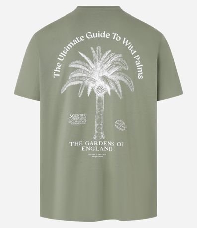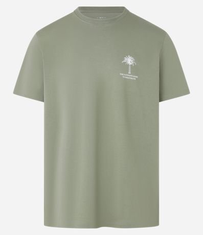 Ref: Camiseta masculina confeccionada em algodão premium, malha peruana confeccionada com boas práticas ambientais. Peça no modelo comfort, gola redonda, manga curta com estampa de lettering e coqueiros.