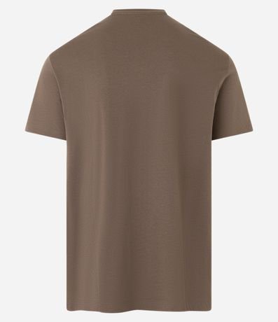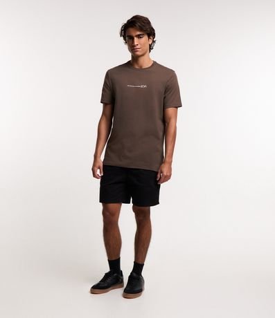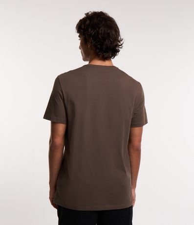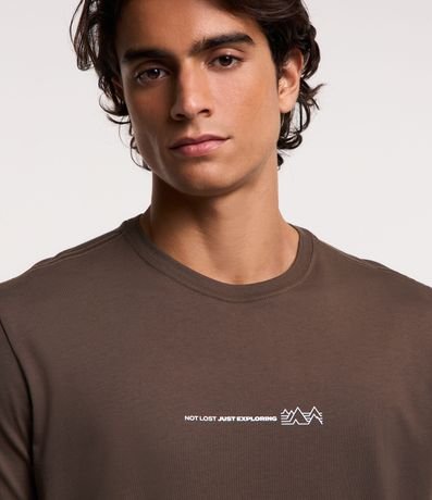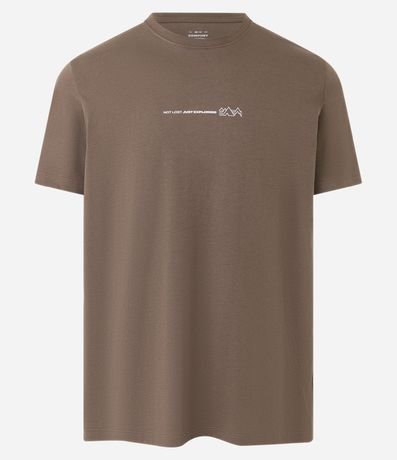 Ref: Camiseta masculina de modelo comfort, confeccionada em algodão peruano, com gola redonda e mangas curtas. Possui estampa frontal minimalista, com lettering "not lost just exploring" e montanhas.