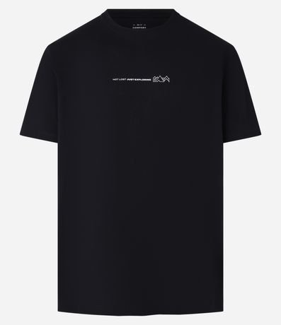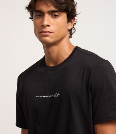 Ref: Camiseta masculina de modelo comfort, confeccionada em algodão peruano, com gola redonda e mangas curtas. Possui estampa frontal minimalista, com lettering "not lost just exploring" e montanhas.