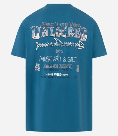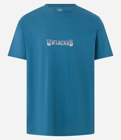 Ref: Camiseta masculina confeccionada em algodão peruano mais sustentável, no modelo comfort. Possui gola redonda, manga curta e estampa lettering "Unlocked" frontais e traseiras.
