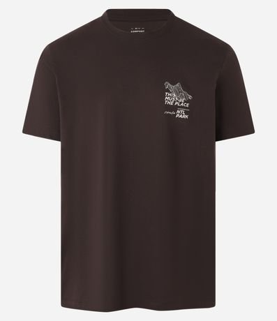 Ref: Camiseta masculina confeccionada em algodão Peruano mais sustentável com boas práticas ambientais. Peça no modelo comfort com gola redonda, manga curta e estampa lettering.