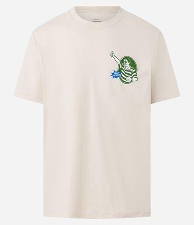 Ref: Camiseta masculina confeccionada em algodão certificado BCI e boas práticas ambientais. Modelo comfort com gola redonda, mangas curtas e estampa exclusiva do cantor Zeca Pagodinho na frente e costas.