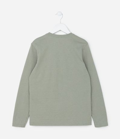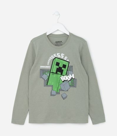 Camiseta infantil com gola redonda, mangas longas e estampa divertida do Minecraft. A peça é confeccionada com boas práticas ambientais e algodão certificado bci.