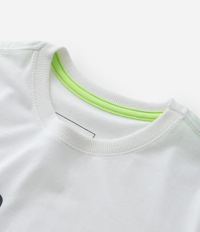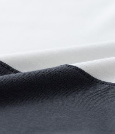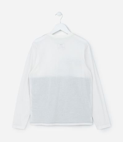 Ref: Camiseta infantil confeccionada em algodão mais sustentável, com gola redonda, manga longa e recorte frontal contrastante. Possui também estampa lettering "NASA" no peito.