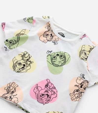 Ref: Camiseta infantil de modelinho comfort, com gola redonda e mangas curtas, confeccionada em algodão. Possui estampa da personagem Sky, da Patrulha Canina.