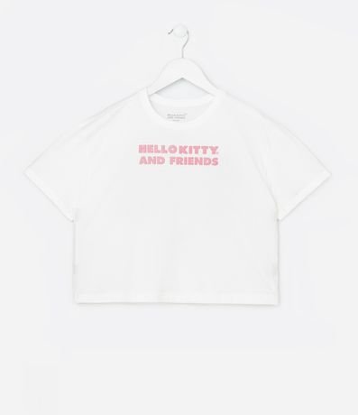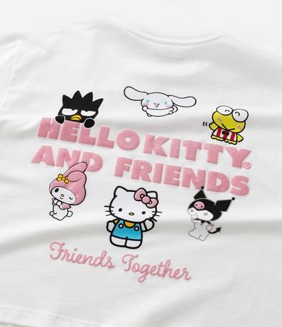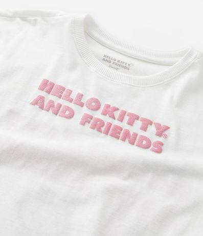 Ref: Camiseta infantil confeccionada em algodão mais sustentável através de boas práticas ambientais, no modelo comfort. Possui gola redonda, manga curta, estampa e lettering "Hello Kitty and Friends" frontais e traseiras.