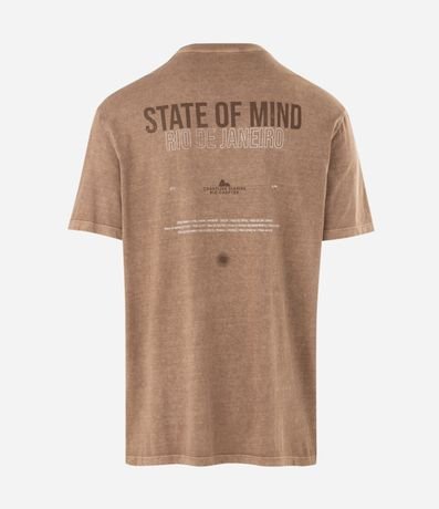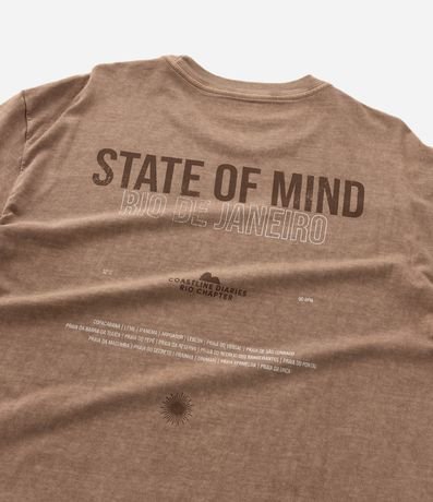 Camiseta masculina confeccionada em algodão certificado BCI através de boas práticas ambientais. Possui gola redonda, mangas curtas, lettering State of Mind.