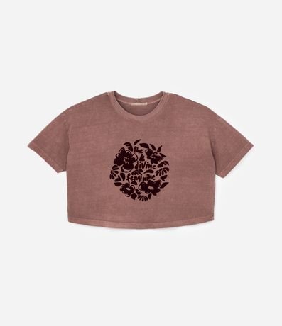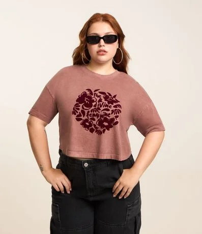 Camiseta Cropped com Estampa Flocada Curve & Plus Size