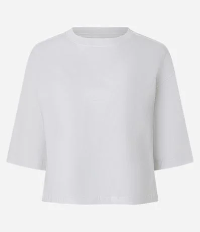 Ref: Camiseta cropped feminina confeccionada em algodão de certificado BCI, com modelagem básica e manga curta. Ideal para compor looks casuais com conforto e estilo, trazendo versatilidade para o dia a dia.