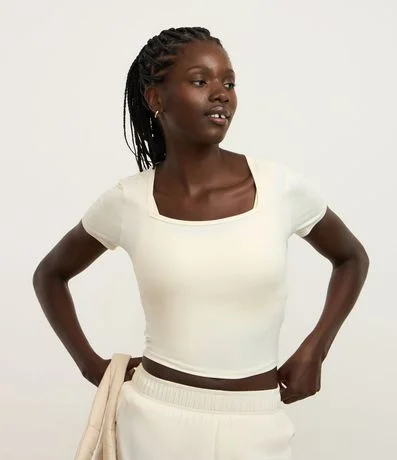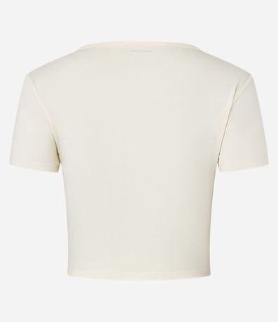 Camiseta esportiva confeccionada em microfibra, com toque suave e sem estampa. A peça conta com comprimento cropped, decote quadrado e mangas curtas.