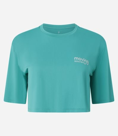 Camiseta Cropped Esportiva em Poliamida com Estampa Moving