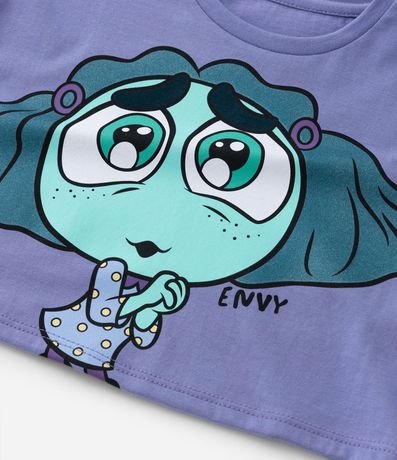 Camiseta infantil de modelinho cropped, com gola redonda, mangas curtas e estampa Divertidamente.