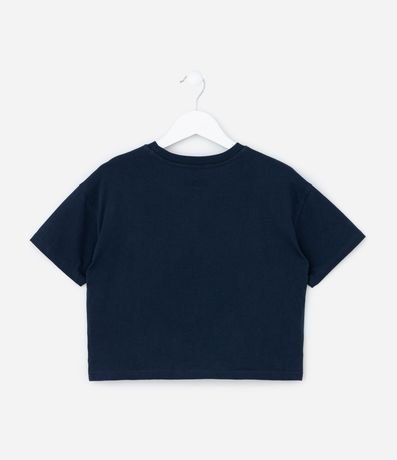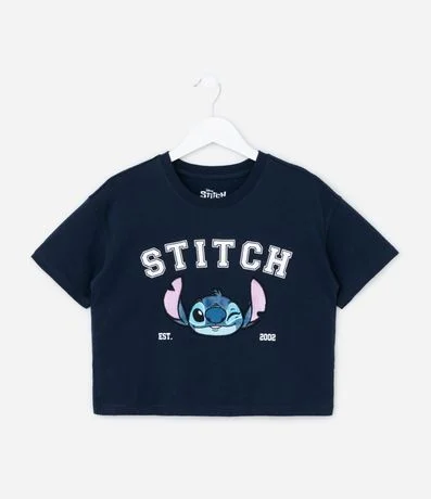Ref: Camiseta infantil confeccionada em algodão certificado bci. Peça de modelo curto, com gola redonda, manga curta e bordado do Stitch com pelinhos.