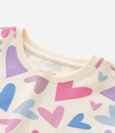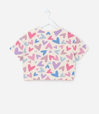 Ref: Camiseta infantil curta, confeccionada em algodão, com gola redonda, mangas curtas e estampa de corações.
