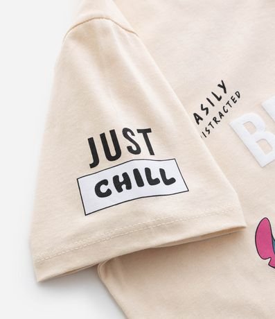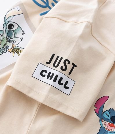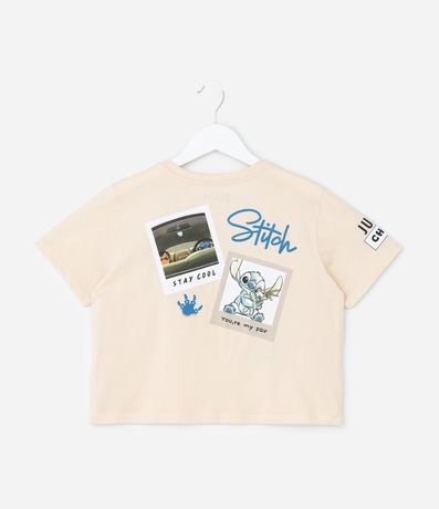 Ref: Camiseta curta infantil com estampa frente e costas do Stitch. Possui gola redonda, mangas curtas e foi confeccionada em algodão mais sustentável.