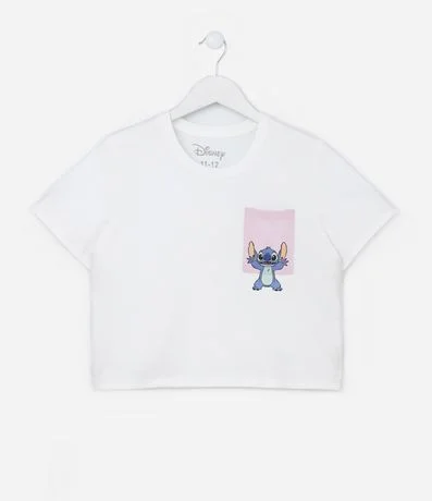 Ref: Camiseta infantil curta confeccionada em algodão, com gola redonda, manga curta e bolsinho com estampa do Stitch.