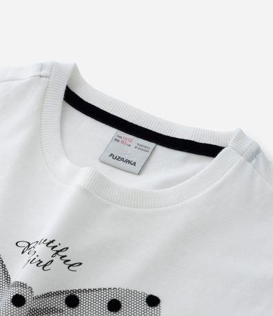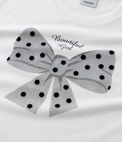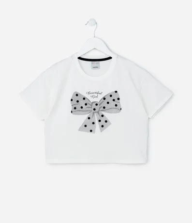 Camiseta Curta Infantil com Estampa Laço - Tam 5 a 14 Anos