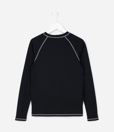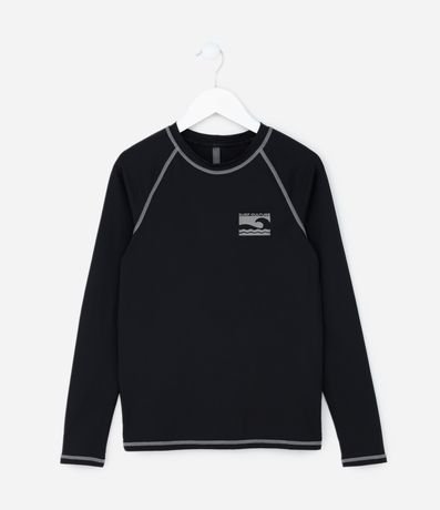 Ref: Camiseta infantil confeccionada em microfibra leve com proteção UV. Possui gola redonda, mangas longas e estampa de onda no peito.