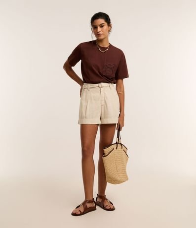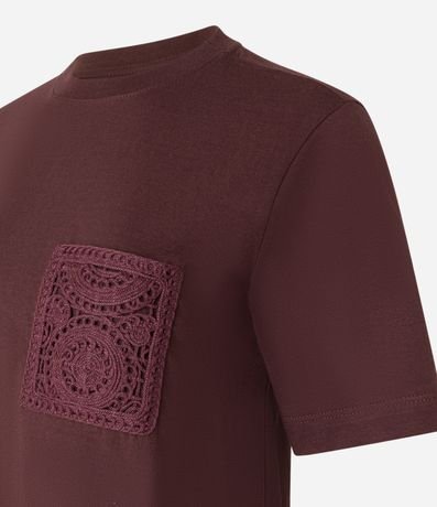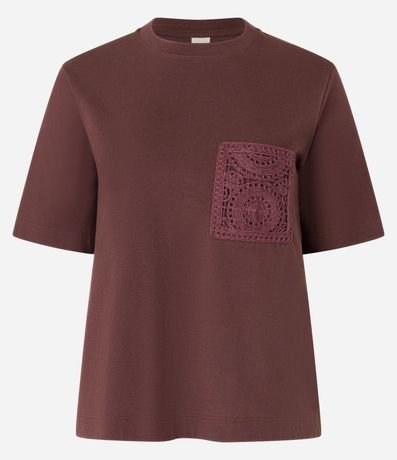 Ref: Camiseta de mangas curtas, confeccionada em algodão, com gola redonda e bolso no peito efeito em efeito crochetado. Este produto possui algodão certificado BCI em sua composição, sendo ambientalmente mais responsável.