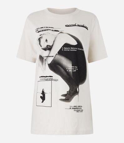 Camiseta feminina confeccionada em algodão, com mangas curtas e estampa da cantora Ariana Grande.