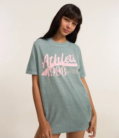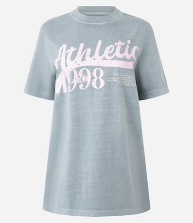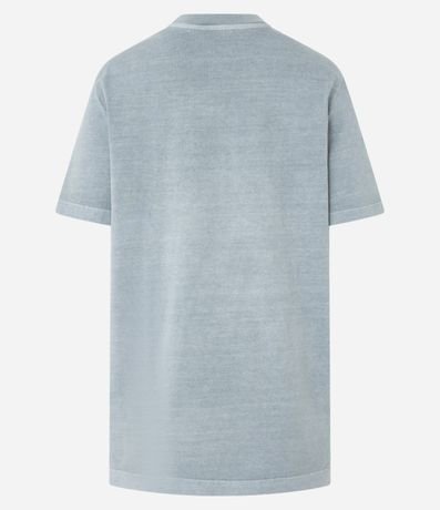Ref: Camiseta confeccionada em malha de algodão BCI. T-shirt com gola redonda, mangas curtas, efeito estonado e estampa frontal lettering.