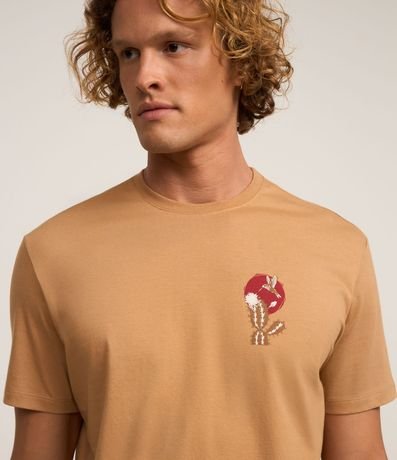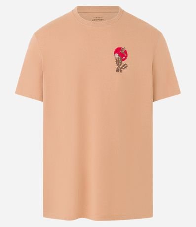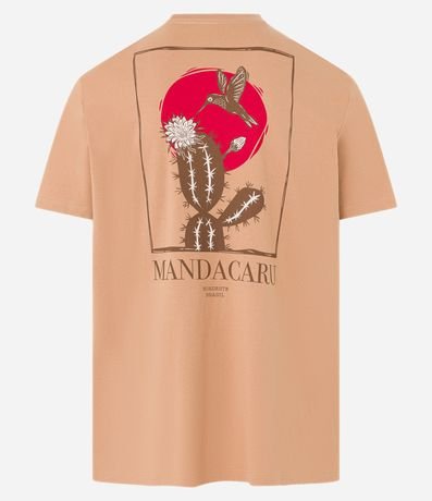Ref: Camiseta masculina confeccionada em algodão mais sustentável, gola redonda e manga curta. Peça com estampa colorida em homenagem ao cacto mandacaru muito comum na caatinga e um beija-flor.