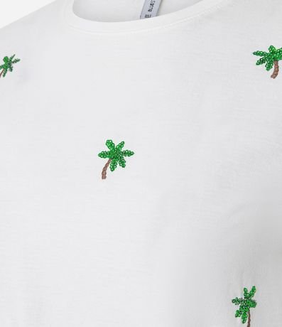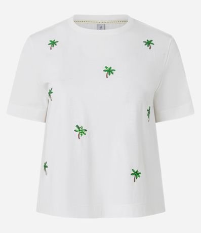 Camiseta em Algodão com Estampa Bordada de Coqueiro em Paetê