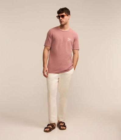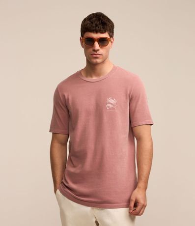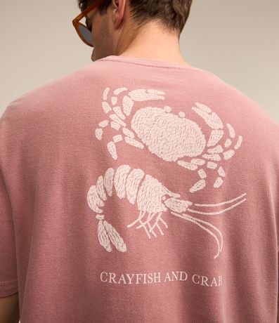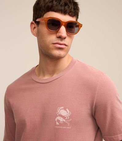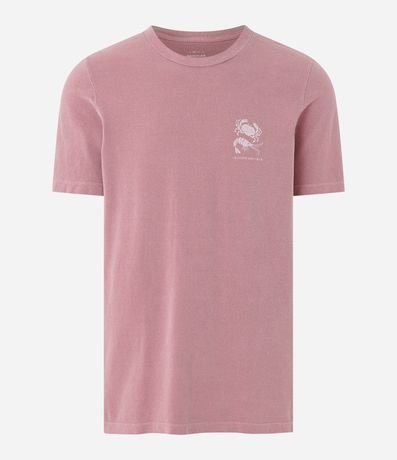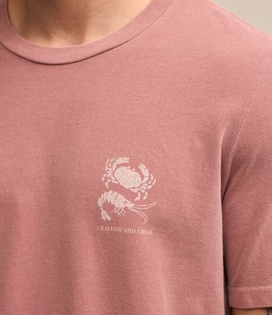 Camiseta masculina, confeccionada em algodão mais sustentável, gola redonda, manga curta. Peça contém estampa localizada de caranguejo.