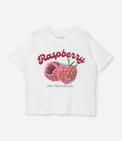 Ref: Camiseta feminina Curve & Plus Size com gola redonda, manga curta, estampa de framboesa. Peça confeccionada em algodão certificado bci.