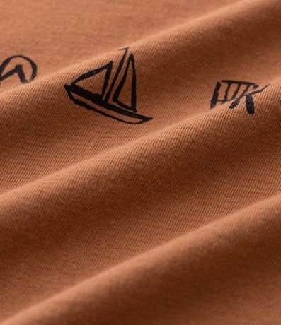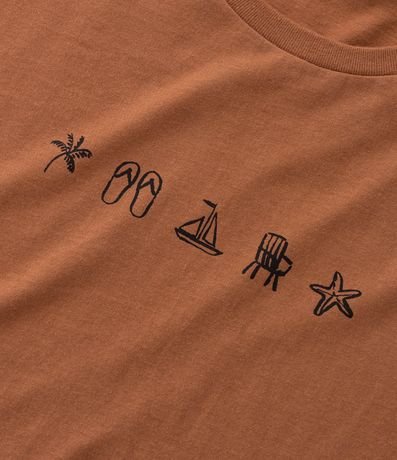 Camiseta masculina confeccionada em algodão, com gola redonda e manga curta. Possui estampa localizada com ícones de praia, trazendo um toque descontraído para o visual. Confeccionado em algodão de certificado BCI, garantindo práticas sustentáveis.