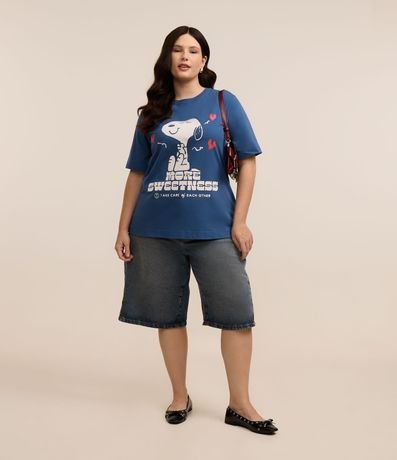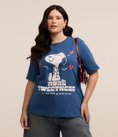 Ref: Camiseta feminina Curve & Plus Size confeccionada em algodão com gola redonda, manga curta e estampa fofa do querido Snoopy.