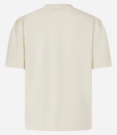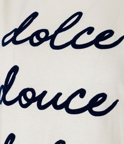 Ref: Camiseta confeccionada em algodão mais sustentável. A blusa tem gola redonda, mangas curtas com preguinmhas nos ombros e estampa lettering DOLCE.