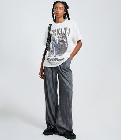 Camiseta em Algodão com Estampa e Lettering Nirvana