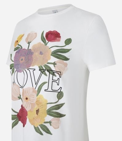 Ref: Camiseta manga curta, confeccionada em algodão mais sustentável com lettering Love no peito e estampa floral com paetês.