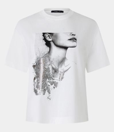 Ref: Camiseta mangas curtas, confeccionada em algodão e com estampa frontal fotografia de mulher com foil.