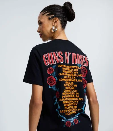 Camiseta em meia malha com estampa localizada do Guns N’ Roses na parte frontal e traseira, trazendo referência ao visual de turnê. Possui gola redonda, mangas curtas e modelagem confortável. Peça ideal para compor looks casuais, confeccionado em algodão de certificado BCI.