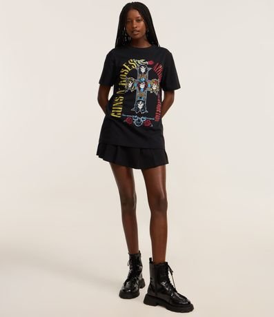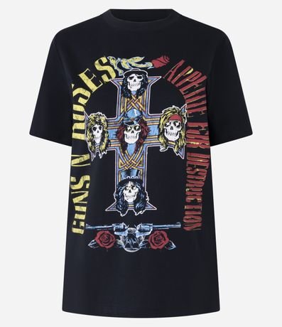 Camiseta em Algodão com Estampa Guns'n'Roses Frente e Costas