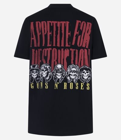 Camiseta de algodão com estampa frontal e traseira da banda Guns N’ Roses.