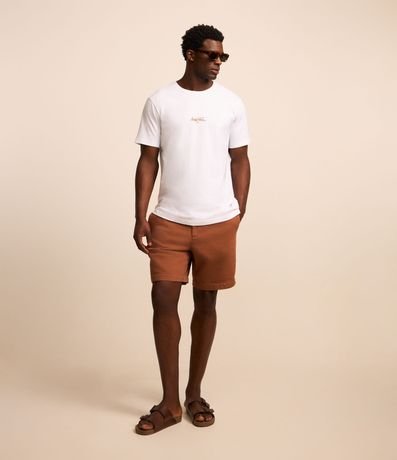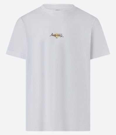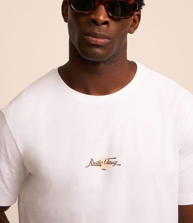Ref: Camiseta masculina confeccionada em algodão mais sustentável, gola redonda, manga curta. Peça com estampa lettering localizada com as palavras rustic classy.