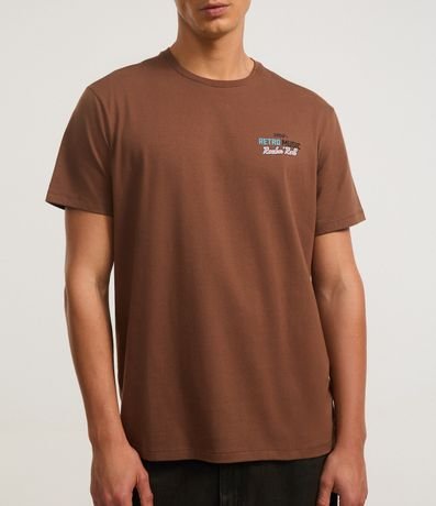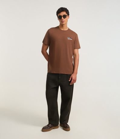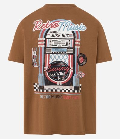Ref: Camiseta masculina confeccionada em algodão certificado bci e boas práticas ambientais, peça com gola redonda, manga curta e estampa de juke box com lettering retro music.