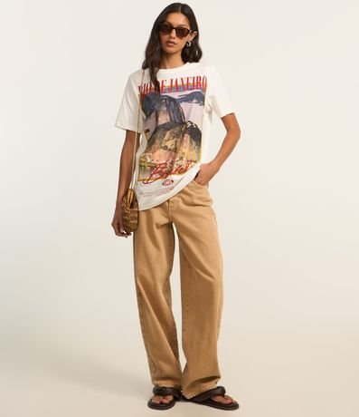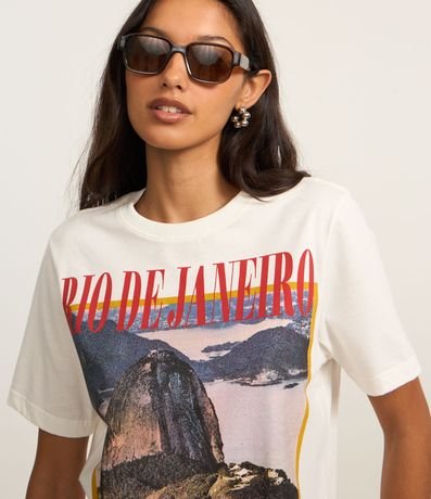 Ref: T-shirt alongada com manga curta, confeccionada em algodão bci mais sustentável e estampa frontal Rio de Janeiro.