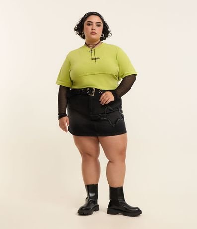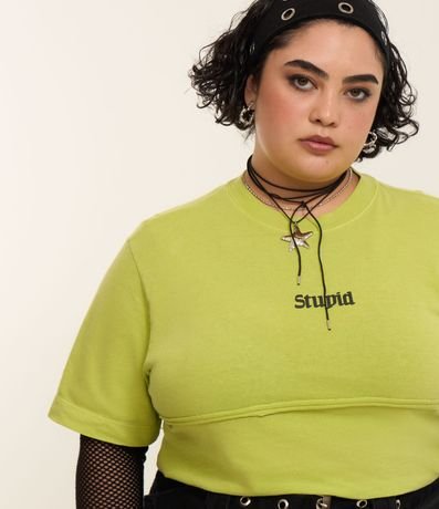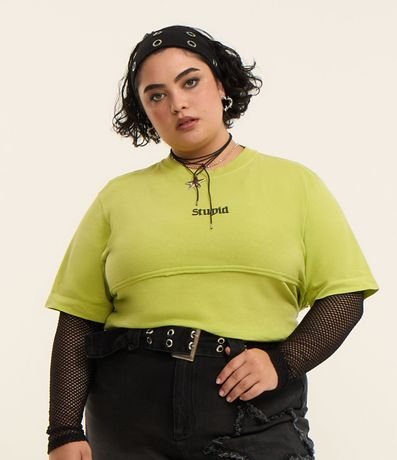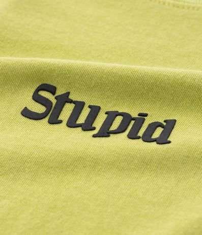 Ref: Camiseta confeccionada em algodão mais sustentável. A blusa tem gola redonda, mangas curtas, recorte horizontal no corpo e estampa frontal "stupid".