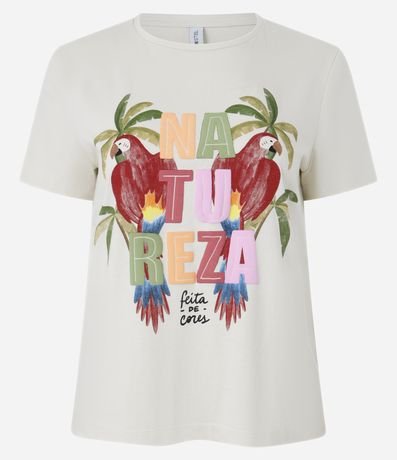 Ref: T-shirt manga curta, confeccionada em algodão bci mais sustentável e estampa frontal com lettering Natureza e Araras.