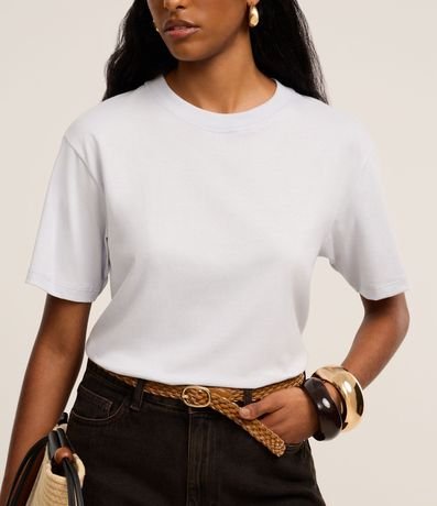 Camiseta de mangas curtas em algodão com gola redonda e sem estampa.