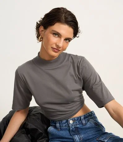 Camiseta em Algodão com Golinha Alta e Manga Curta