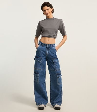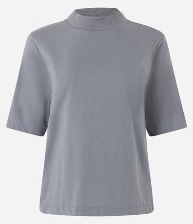Blusa básica confeccionada em malha de algodão. Modelo com gola ligeiramente alta e mangas até próximas dos cotovelos. Peça coringa para compor desde looks mais casuais até mais arrumadinhos.